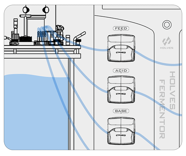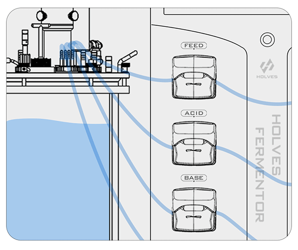 以91视频破解版免费下载(HOLVES)实验室91视频WWW免费下载为例,pH电极测定完数值后,结果会直接反馈给HF-Control V2.2控制系统,系统则会根据原先设定数值进行调节补料等操作,将罐内pH值控制在最佳范围内。