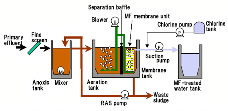 (4)反应池:包括微生物菌落,膜组件,水收集系统,排水系统和通气系统。